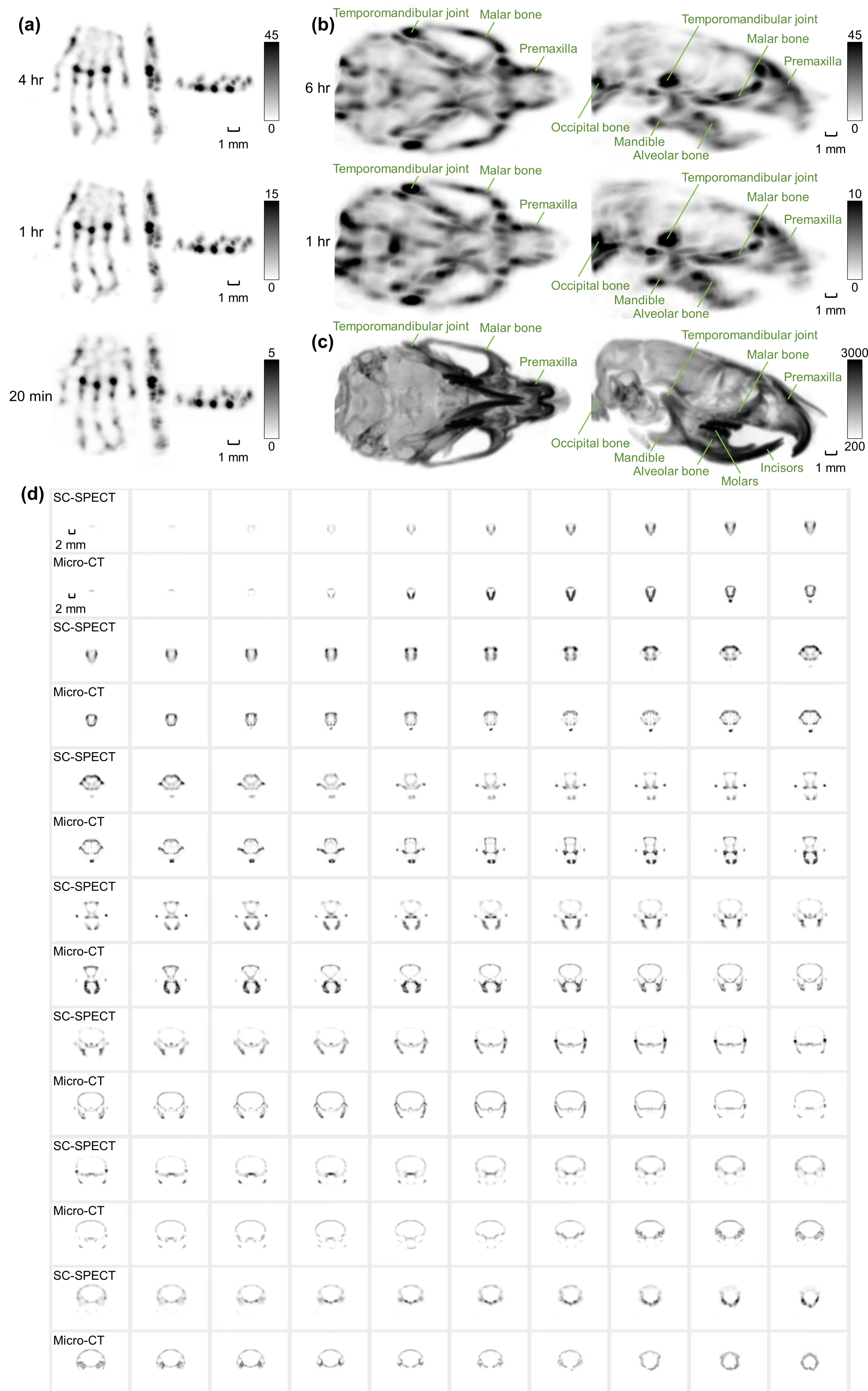 小鼠骨显像结果显示,该系统能够清晰分辨细微骨骼结构中的放射性药物分布,展现出接近CT空间分辨能力的在体成像效果。