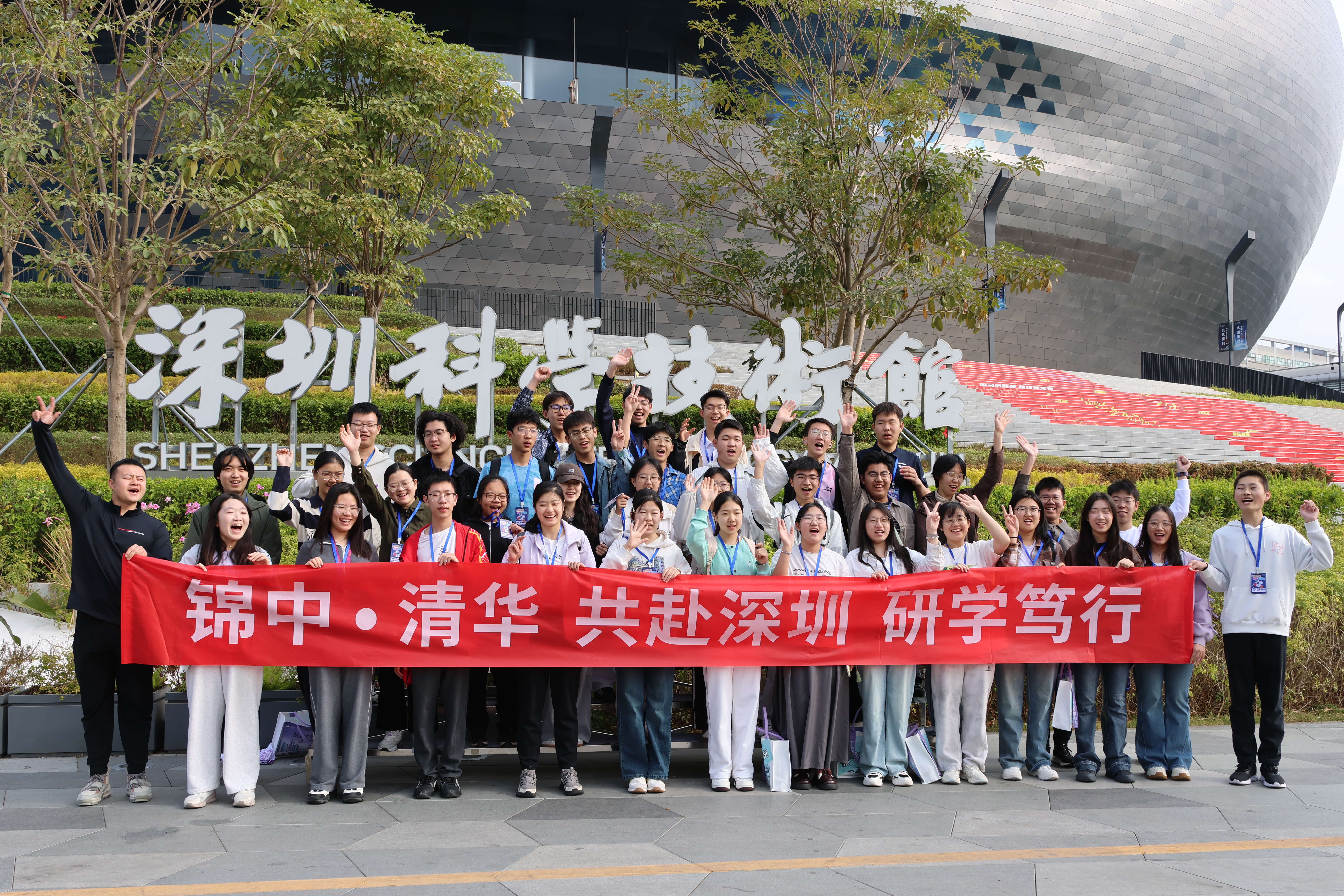 支队成员与锦山中学学生在深圳科学技术馆前合影