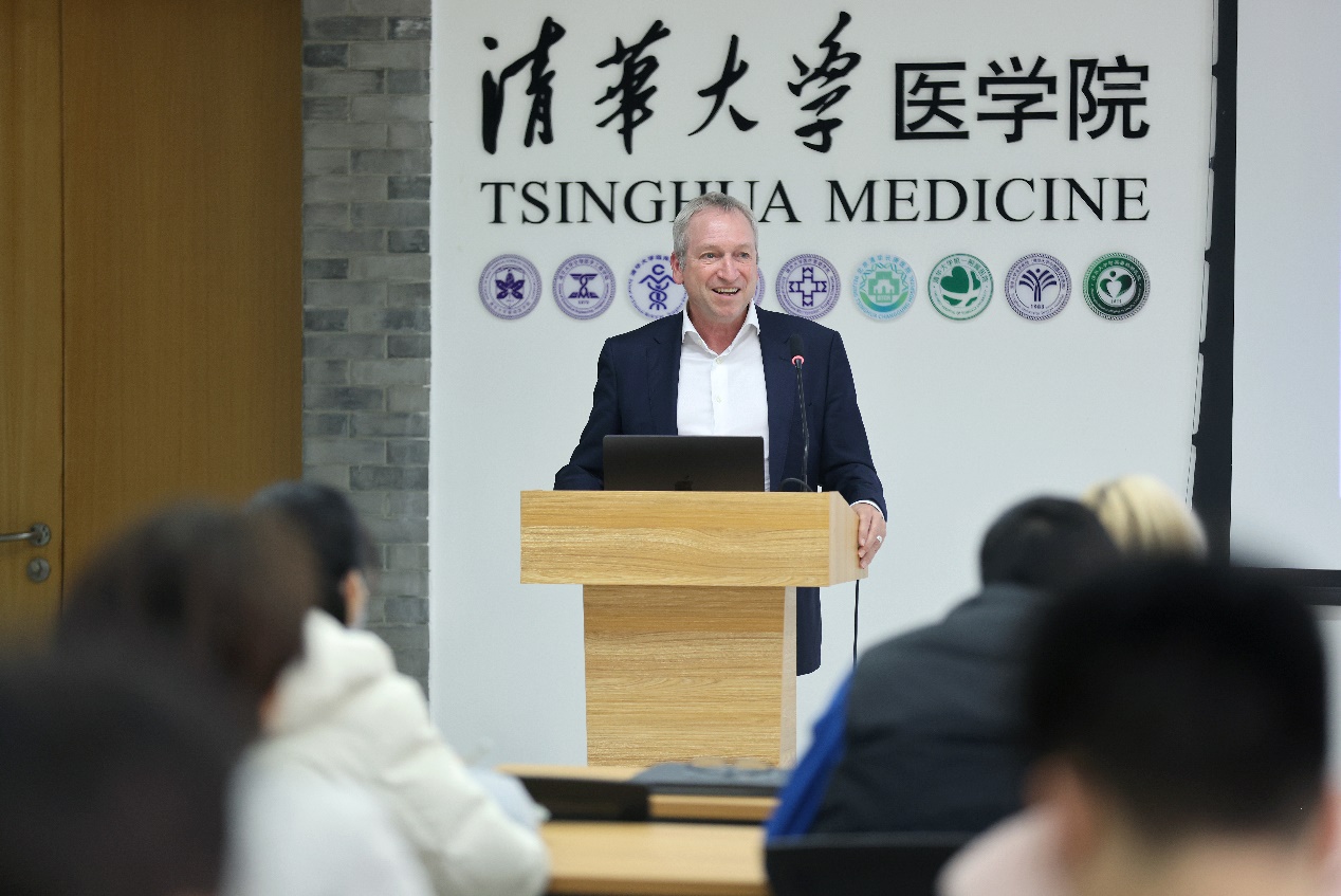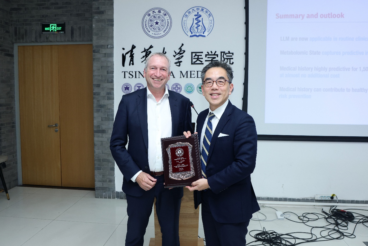 清华新闻网3月31日电 3月25日,德国国家科学院院士、德国柏林健康研究所数字健康中心创始主任、复旦大学智能医学研究院执行院长罗兰·艾尔斯(Roland Eils)做客清华大学海外名师讲堂第267讲,以“数据拯救生命:人工智能模型在疾病预测与预防中的应用”为题发表演讲。清华大学副教务长、医学院院长黄天荫主持活动并为罗兰·艾尔斯赠送纪念牌。