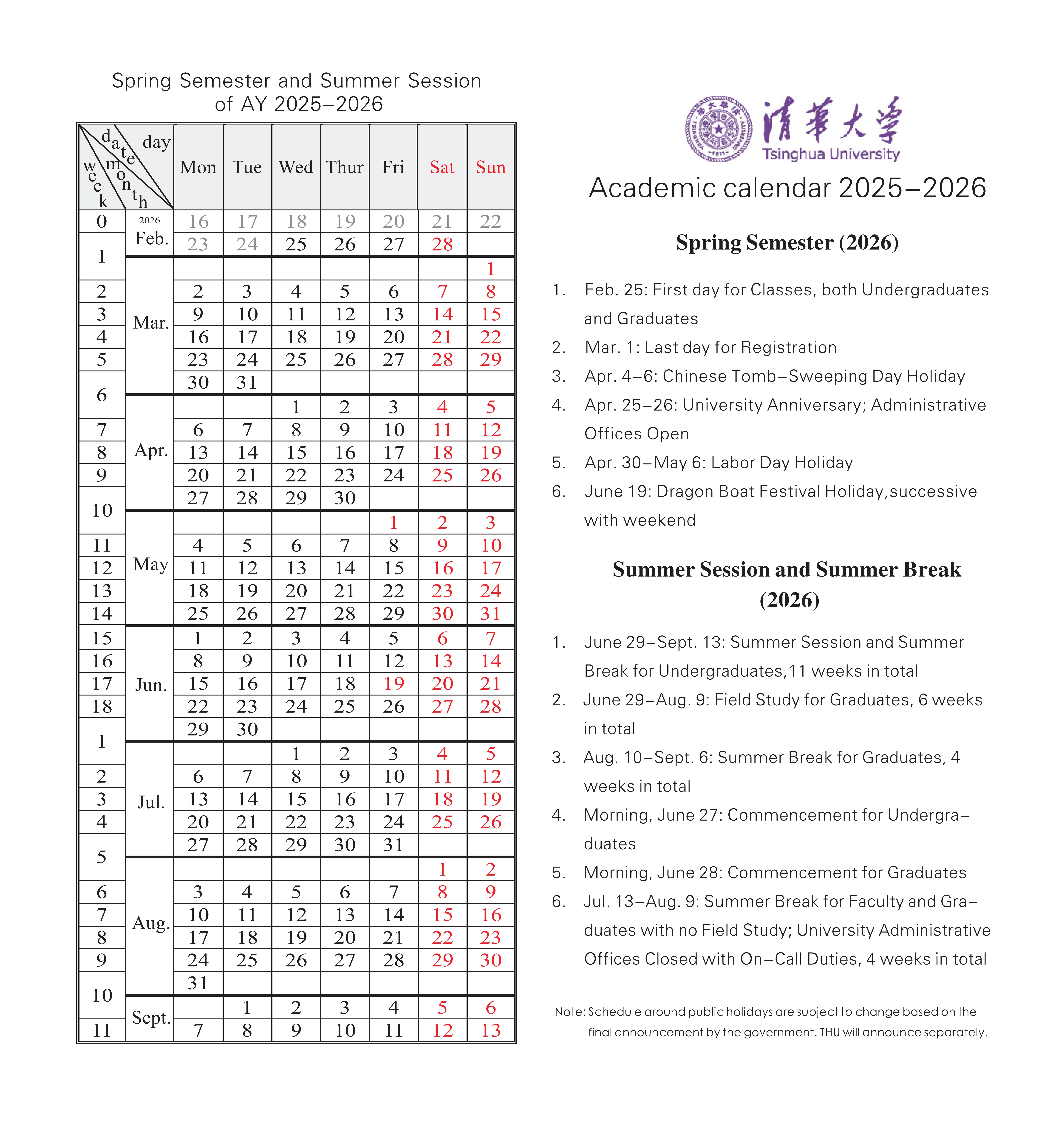 Academic Calendar