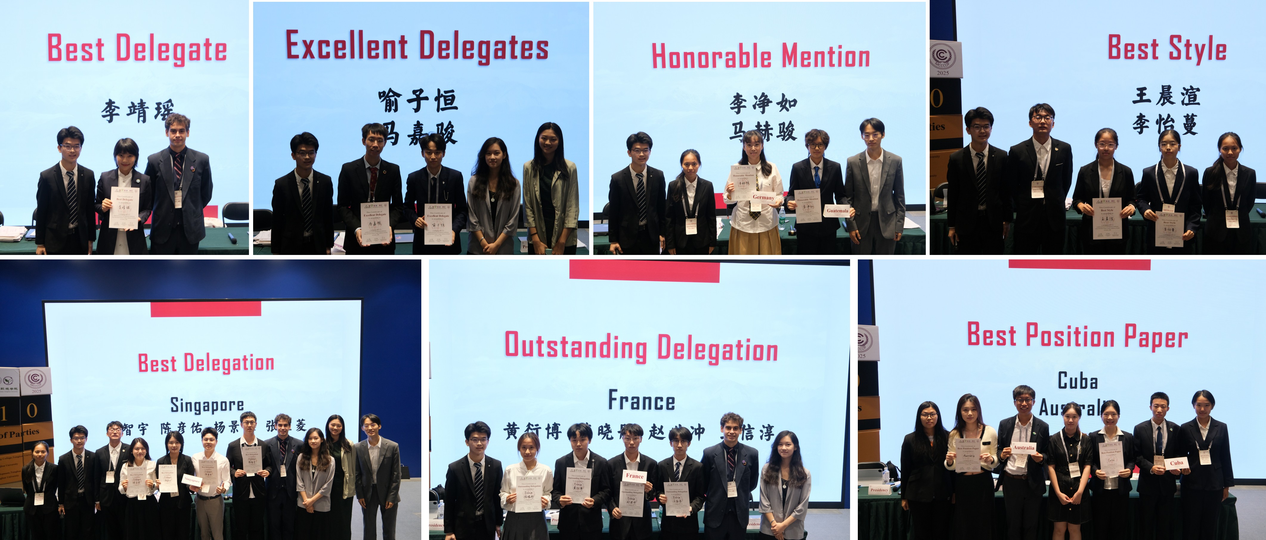 The closing ceremonies were held on October 2 and 3, respectively. The conference recognized outstanding performances with awards for Best Delegate, Outstanding Delegation, and Best Position Paper.