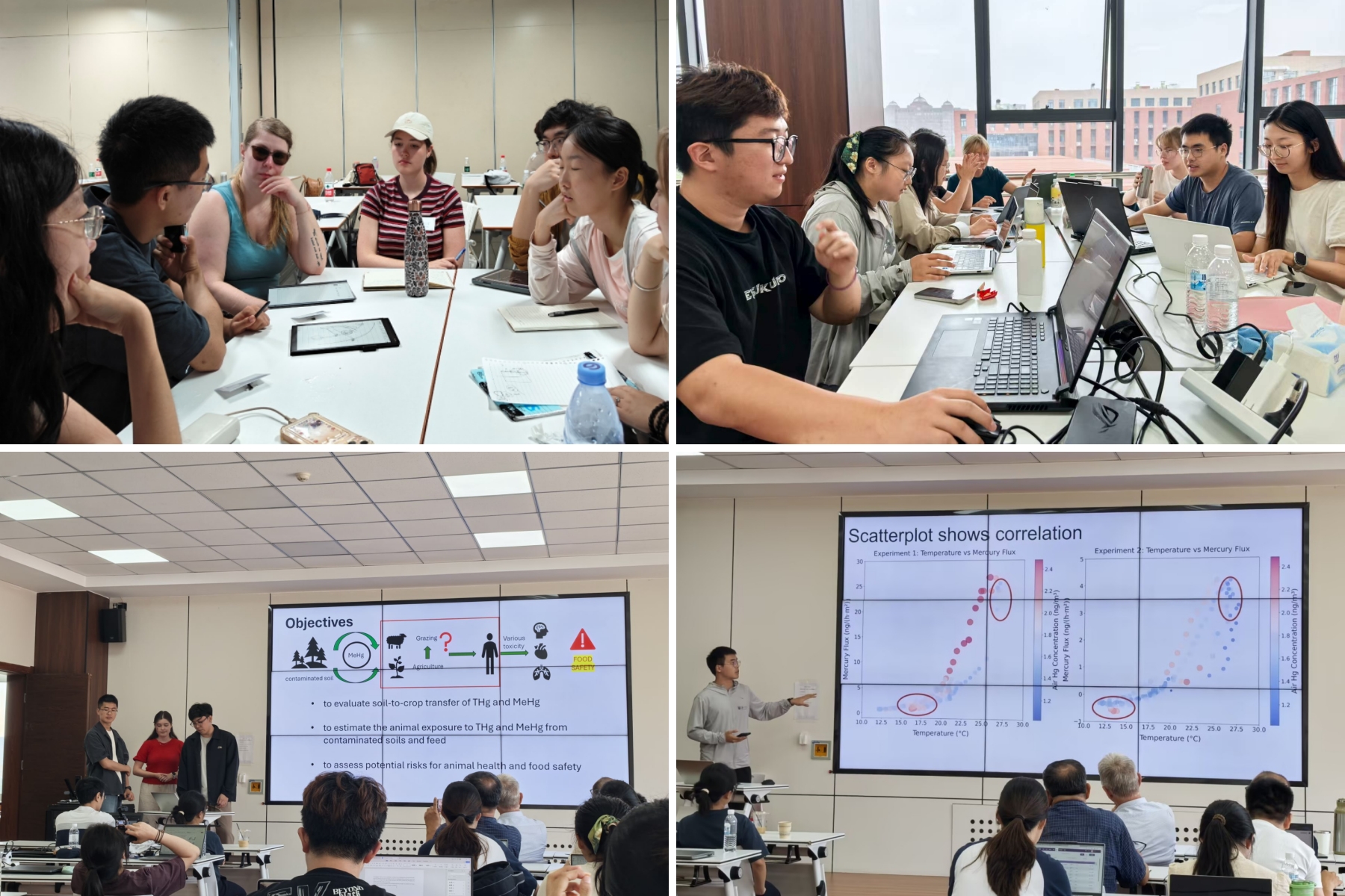Following the field trips, students conducted literature reviews and presented preliminary findings on August 18. By comparing soil moisture, organic matter, and mercury content between the Shougang and Tsinghua samples, the groups formulated scientific hypotheses for the next stage of their research in Inner Mongolia.
