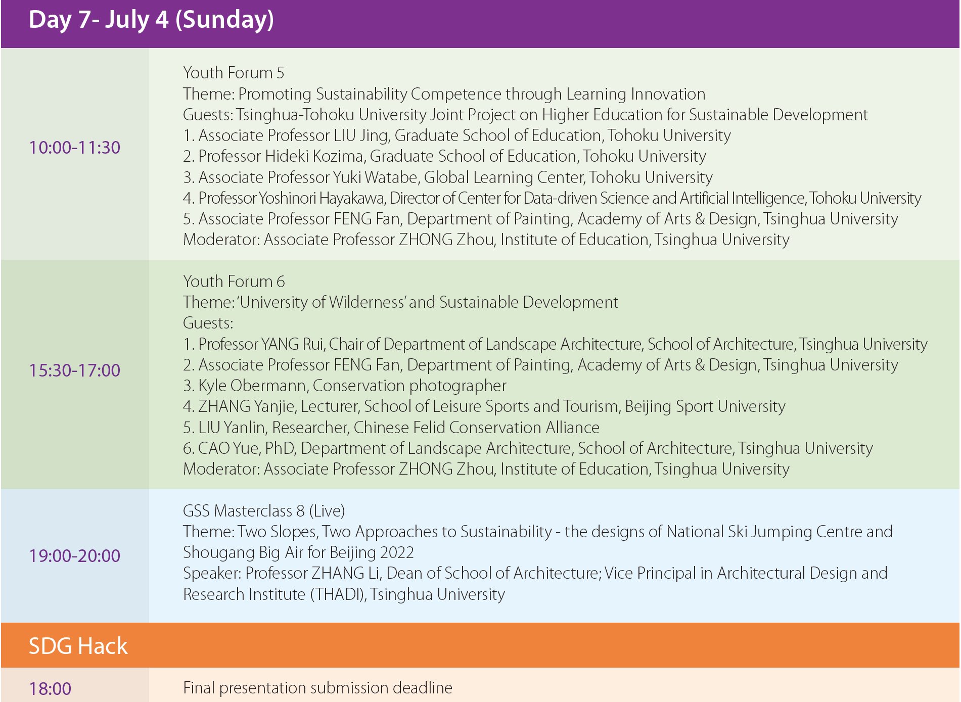 Tsinghua Global Summer School 2021 Course Schedule