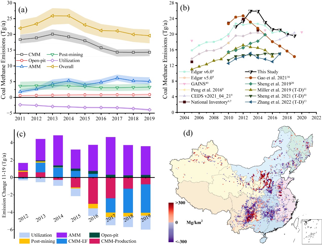 清华新闻网5月21日电 甲烷(CH4)减排是实现《巴黎协定》气候目标的关键支柱之一。中国大量的甲烷排放来自煤炭部门。目前,中国已经承诺到2060年之前实现“碳中和”,这需要在未来几十年内大幅降低煤炭生产和消费,以及大规模关闭现有煤矿。然而,目前尚不清楚关闭这些煤矿将如何影响甲烷的排放特征,以及中国能否通过具有针对性的关闭策略来协同深化甲烷减排。产生这一不确定性的主要原因是,现有的排放清单研究往往严重低估甚至忽略了来自废弃煤矿的甲烷排放(Abandoned mine methane; AMM),因而难以支持在全球退煤背景下的甲烷减排战略。