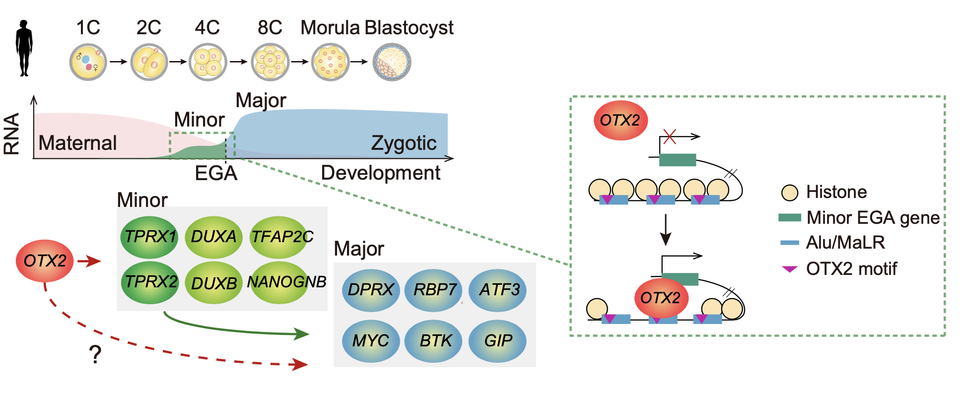 10月27日,清华大学生命学院颉伟教授课题组、山东大学妇儿与生殖健康研究院陈子江院士和赵涵教授课题组在《自然·遗传学》(Nature Genetics)发表了题为“母源因子OTX2调控人类胚胎基因组激活和早期发育”(Maternal factor OTX2 regulates human embryonic genome activation and early development)的研究论文。研究揭示了母源转录因子OTX2在启动人类EGA中发挥关键作用,并探究其在早期人类生命起始阶段重要的分子调控机制,对发育生物学和生殖医学领域具有重要意义。