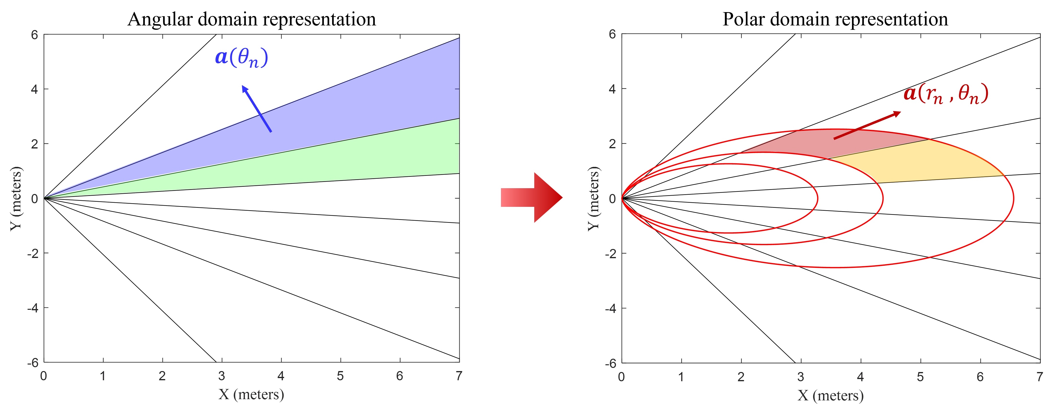该获奖论文是6G近场通信领域早期的学术论文之一。论文率先揭示了近场通信区别于5G大规模MIMO技术的物理特性,即近场通信额外具备距离维度上的信号聚焦能力,基于此提出了近场信道的极坐标域(polar-domain)表征方法,高效利用近场信道提供的额外自由度。相比而言,现有5G大规模MIMO系统常采用远场信道的角度域(angular-domain)表征方法,通过对空间角度的均匀划分,挖掘信道的角度信息,保证远场信道在角度域的稀疏性。论文提出的近场信道极坐标域表征方法,则在均匀划分空间角度的基础上,额外增加了对空间距离的非均匀划分,从而同时提取近场信道在“角度-距离”两个维度上的信息。基于菲涅尔近似可证明,团队提出的极坐标域信道表征方法可同时适配近场和远场传播环境,保证远近场信道的极坐标域稀疏性。
