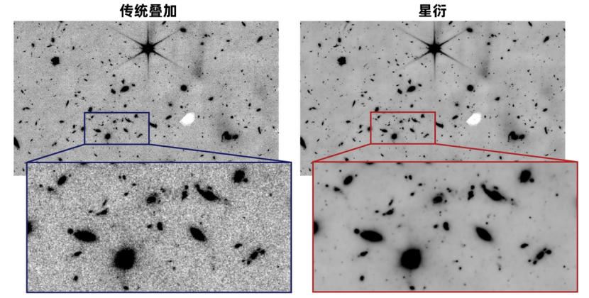 在詹姆斯·韦伯空间望远镜的观测数据上,星衍展现了惊人的效果:将探测暗弱天体的完备度提升了整整1.0个星等,并将探测的准确度提升了1.6个星等。“这相当于将望远镜的光子收集效率提升了近一个数量级。从探测深度角度评估,相当于把韦伯空间望远镜的等效口径从6.4米提升到了接近10米量级。”研究人员介绍道,“这一突破为研究极端暗弱天体打开了新的窗口。”