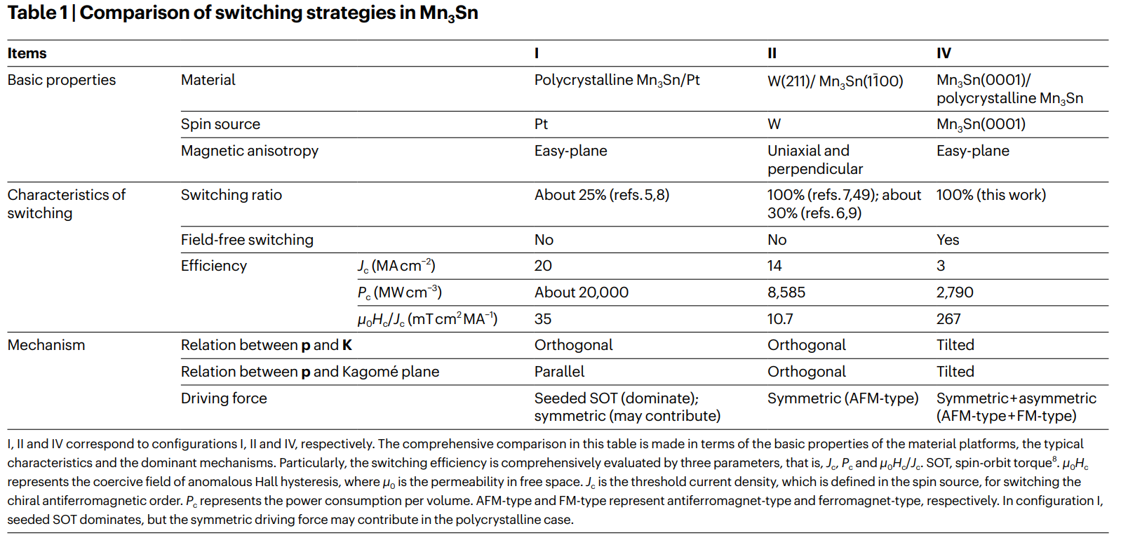 表1.Mn3Sn的翻转策略的对比