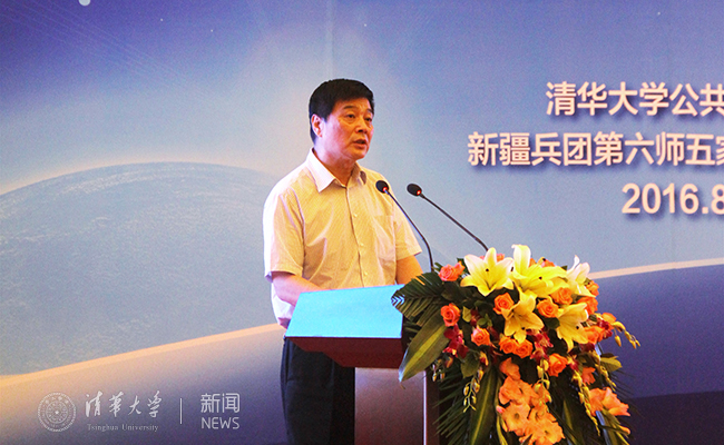 清华新闻网8月30日电 8月27日上午,以“一带一路”与开放发展为主题,由清华大学公共管理学院、新疆生产建设兵团(以下简称“新疆兵团”)第六师五家渠市人民政府联合主办的“第十一届清华大学公共管理高层论坛”在新疆五家渠市开幕。新疆兵团党副政委卢晓峰,清华大学校务委员会副主任韩景阳出席开幕式并致辞。