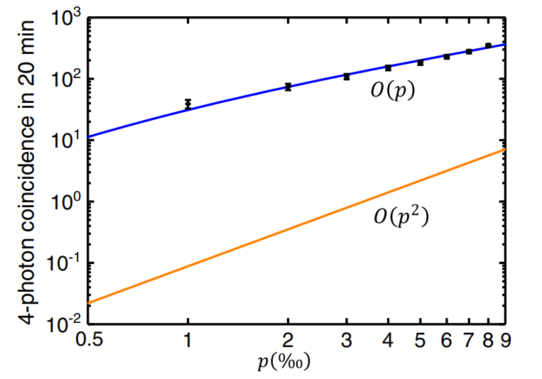 图态是一类重要的多体纠缠态,因其广泛的应用前景而不断受到研究人员的关注,包括测试量子力学基本概念、量子计算、量子密码学和量子计量学等。之前的实验制备图态,特别是线性光学系统中的GHZ(Greenberger-Horne-Zeilinger)态,其制备效率随系统规模呈现指数衰减定律,这限制了其在大规模量子网络中的应用。为了克服非局域图态制备的可扩展性问题,段路明等提出了一套高效制备图态的理论方案,制备效率随系统规模呈现多项式衰减。该方案的核心思想是,不参与后期操作的光子可以被提前测量和后选择;然后利用长寿命量子存储器以分治的方法生成大规模图态。然而由于实验技术方面存在的困难,该方案此前未能实现。