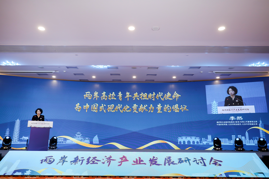 本次研讨会以“共享中国式现代化新机遇”为主题,旨在探讨中国式现代化进程中,两岸新经济产业的前景、挑战和机遇,促进两岸企业向智能、数字、绿色等方向提质升级、创新发展,推动两岸在新兴产业领域的深度融合。来自两岸的百余位专家、学者和企业家参会,共同为两岸新经济产业繁荣发展集思广益、建言献策。清华大学两岸发展研究院常务副院长王治强主持研讨会。
