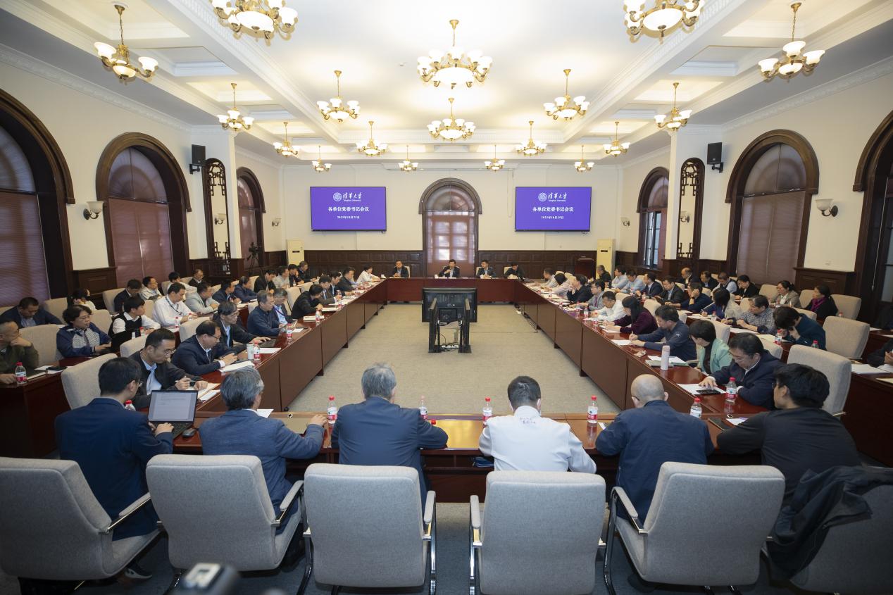清华新闻网10月26日电(记者 王晓霞 摄影 李派)10月25日下午,清华大学在二教会议室召开各单位党委书记会议,深入推进主题教育成果转化,部署实施《清华大学全面贯彻落实党的二十大精神行动方案》等重点工作。校党委书记邱勇出席并主持会议,校党委副书记过勇、许庆红,校党委副书记、纪委书记赵罡出席。