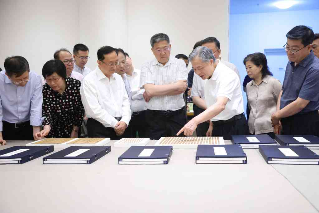 在艺术博物馆,雒树刚一行听取了清华大学出土文献研究与保护中心主任黄德宽关于《清华大学藏战国竹简》的介绍,参观了“清华藏珍·丝绣华章”馆藏展以及2024届清华大学美术学院毕业生作品展,并调研了美术学院人才培养情况、艺术博物馆馆藏情况和相关学科发展情况等。