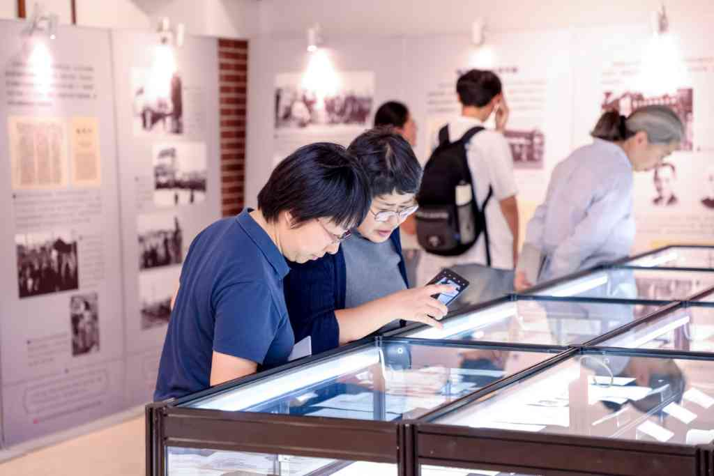 在第二个打卡点综合体育馆南门对面附近的“两弹一星”精神刻石前,教职工们瞻仰学习,传承、践行“两弹一星”精神。在第三个打卡点校史馆序厅内,教职工们参观“烽火弦歌——抗战时期的清华”专题展,铭记历史、缅怀英烈。