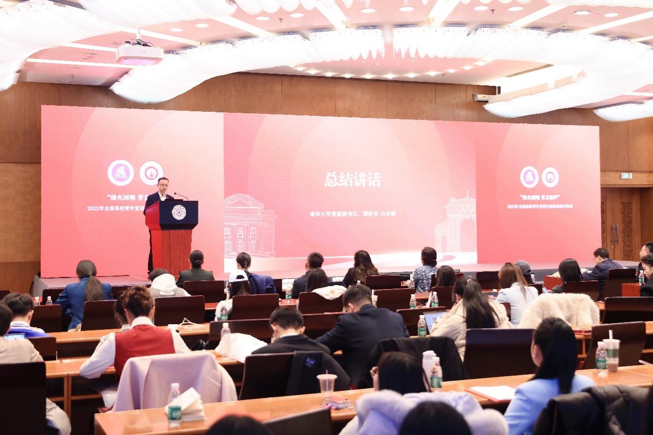 清华新闻网12月6日电 11月30日,“烽火回响 青言新声”全国高校青年宣讲比赛在清华大学举行。来自96所高校的122名青年讲师参加宣讲比赛,从中产生18名获奖选手。共青团中央宣传部部长洪亮出席,并为参与2025年接力宣讲活动的高校青年宣讲团体颁发证书。北京市社会科学院党组成员、副院长、市委讲师团团长肖峻峰,清华大学党委副书记、副校长白本锋分别作比赛点评和总结讲话。