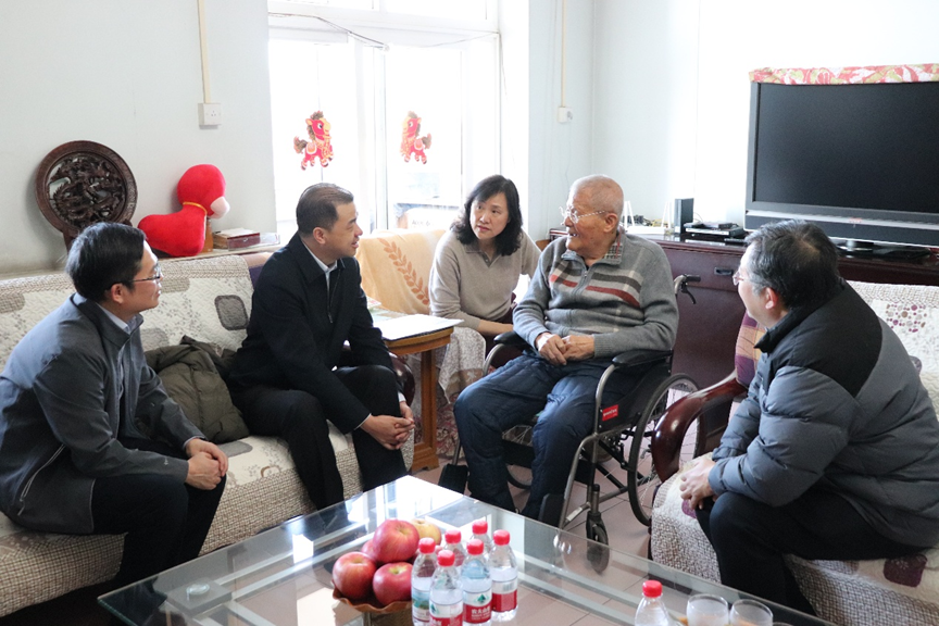 清华新闻网2月12日电 2月2日,校党委常务副书记向波涛一行前往1946级老校友、老党员、现年98岁的赵宗鼐学长家中,看望赵宗鼐学长并送上新春祝福。化工系党委书记吕阳成、清华校友总会化工系分会秘书长朱兵等一同参加看望。
