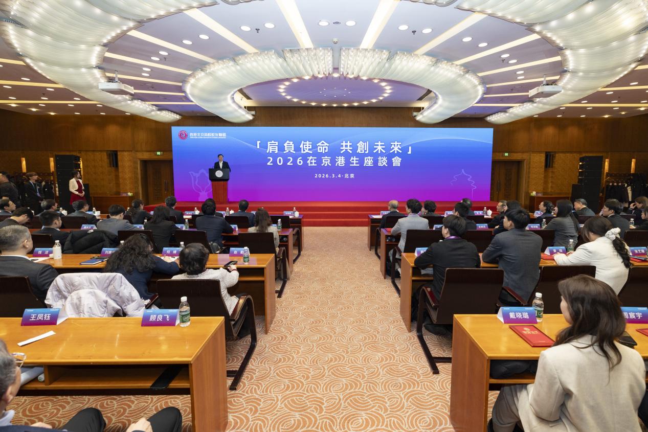 “肩负使命 共创未来”2026在京港生座谈会在主楼接待厅举行。李家超,北京市委常委、教育工委书记于英杰,邱勇出席并致辞。清华大学党委副书记许庆红、校务委员会副主任杨斌参加。