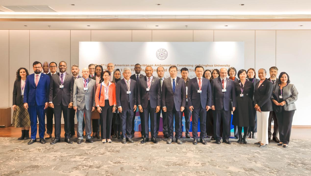 清华新闻网3月30日电(记者 岳沁蓉 摄影 李派 孙波)3月25日,第五届拉美和加勒比驻华大使荟清华活动在经管新楼举行,聚焦“中国的‘十五五’规划与经济转型”主题进行深入交流。清华大学党委书记邱勇、多米尼克驻华大使马丁·查尔斯(Martin Charles)、外交部拉美司司长张润出席并先后致开幕辞。清华大学校务委员会副主任杨斌致闭幕辞。来自拉美和加勒比地区22个国家驻华使馆和代表机构的30余名驻华使节和代表参加活动。