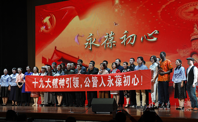 其中,由清华大学公共管理学院40余位教职工、博士后和中外学生自编自导自演的话剧《初心在哪里》从7月开始组织创作团队,以寻找党的初心为主题策划创作。该剧选取1926年清华大学第一个党支部成立、1935年“一二·九”运动中清华学生爱国游行和1948年“西马”俱乐部集会等三个典型历史节点设置场景,回顾了新民主主义革命时期清华人的强国富民梦想,通过模拟党课师生关于梦想与初心的对话,展示共产党人始终坚持为人民服务的赤子之心。