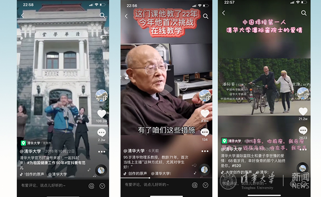 以清华大学抖音账号为例,2019年先后制作出多部播放量超1000万、点赞数过100万的叫好又叫座的“爆款”作品,如“开学典礼佩戴徽章仪式”“天机‘芯’自行车”“清华大学,这里有无限可能”“88岁老党员在党旗下宣誓”等视频,令人印象深刻、获得热烈反响。
