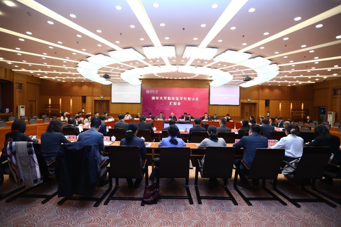 10月14日上午,临床医学专业认证反馈会在主楼接待厅举行。认证专家组成员,清华大学党委书记陈旭,副校长杨斌,医学院主要负责人,临床医学院及附属医院代表,学校相关院系、部处负责人、医学院教师代表等出席会议。王卫平主持会议。