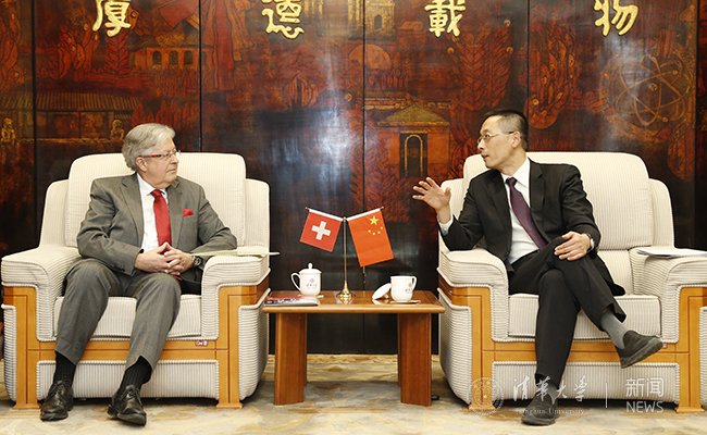 戴尚贤大使表示,清华大学的历史沿革给他留下了深刻印象,并对近年来清华在学科建设和国际化发展等方面取得的重大成果表示祝贺。他表示,瑞士是最早与中华人民共和国建交的西方国家之一,中国国家主席习近平在2017年1月对瑞士进行了国事访问,目前中瑞两国关系发展良好。希望未来双方继续深化各种形式的沟通与合作,为中瑞两国的高等教育发展和人文交流做出更大的贡献。