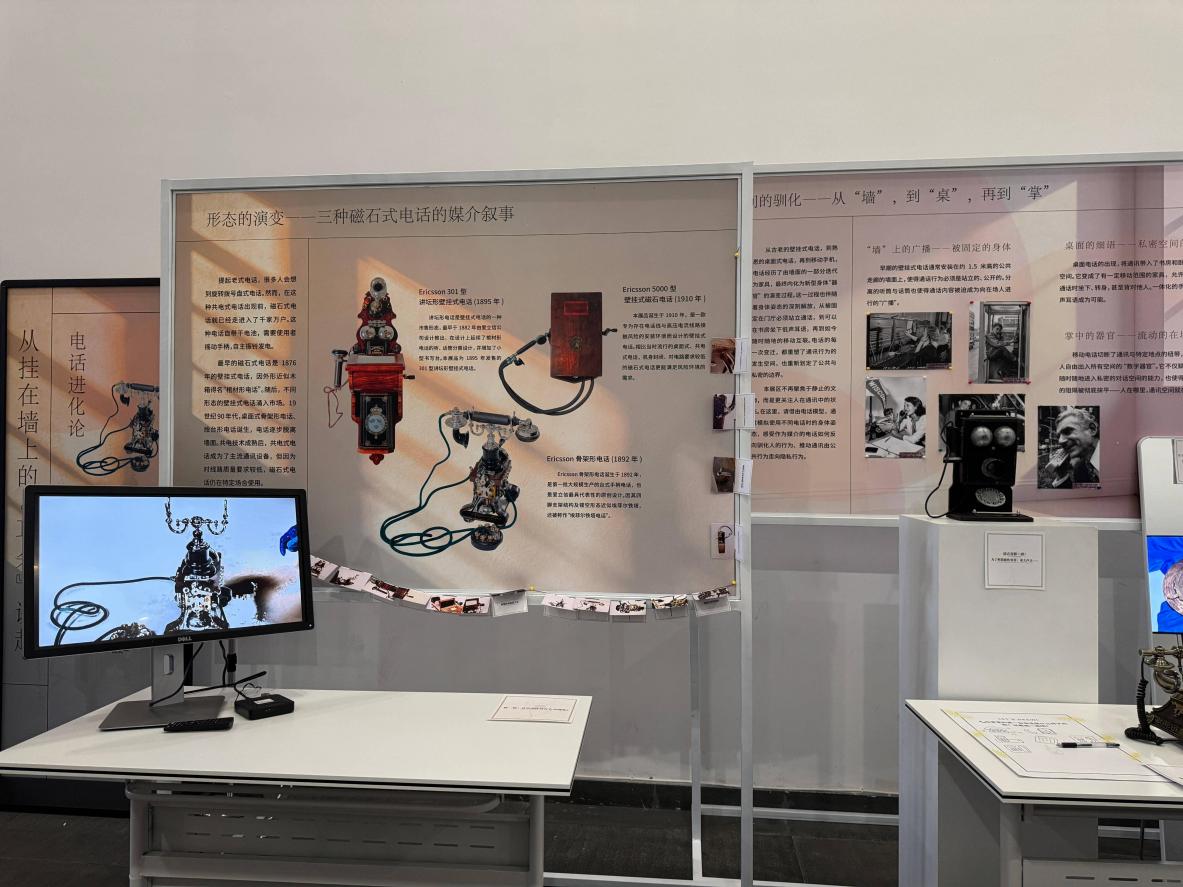 此次展览内容源于吴璟薇的研究生课程“媒介发展史”与科学博物馆资源深度融合后创新教学的实践成果,共呈现六组学生策展成果。在科学博物馆的公共空间内,它们以多个微观视角切入,串联起人类文明的演进——“一场关于火的布道”重现火的媒介史,追溯人类如何在自然元素的操作中塑造自己的文明与生活方式;“日与夜之间”介绍不同的计时仪器如何让抽象的时间“可视化”,以呈现过去人们如何通过星象、流沙来计量时间的变化;借助立体镜与光学装置,“爱丽丝梦游仙‘镜’”让公众了解光学媒介如何通过“观看”影响人们对世界的认知;“指尖的编码”通过打字机与输入法呈现中英文打字机在编码和操作上的区别,并通过网页设计出小程序供观众体验以“明快打字机”为代表的打字机的操作原理;“炮火中的嘀嗒声”以战争时代为背景讲述电报如何传递信息,借助动态演示展示了摩尔斯电码与发报电键的运行奥秘;“电话进化论”展示了电话的演变及其如何不断重塑社会空间。