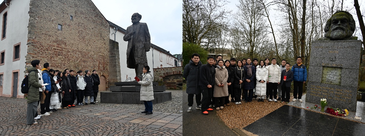在德国特里尔,支队一行参观了马克思故居,深入了解马克思主义的形成脉络及其对世界历史进程的深远影响,并在马克思雕像前重温《共产党宣言》。在英国伦敦,支队成员前往海格特公墓拜谒马克思墓,参观马克思纪念图书馆,并与当地青年代表进行座谈交流,围绕马克思主义理论的当代实践等展开讨论。