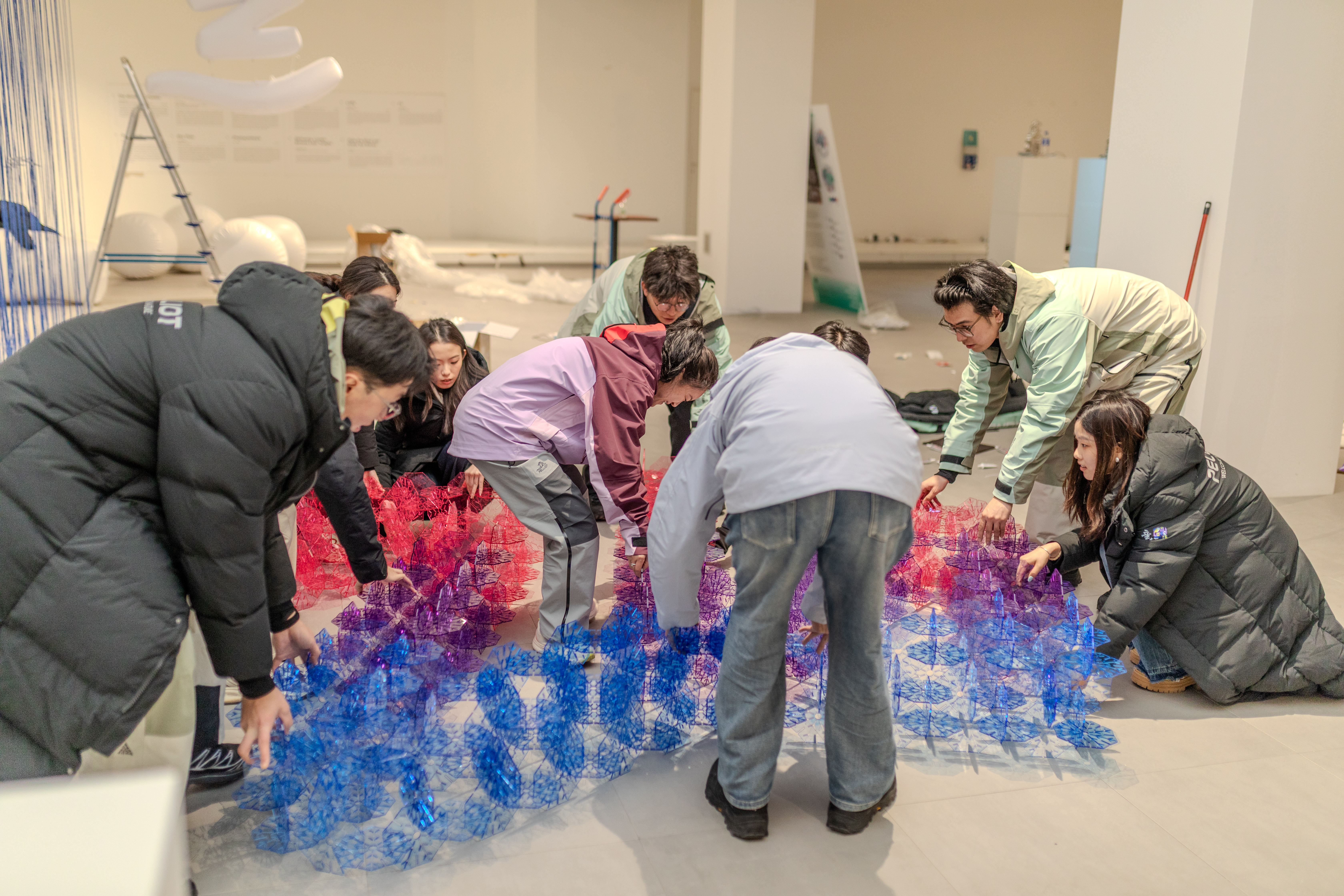 支队成员为“双奥之城·青年之约”清华大学美术学院冬奥文化交流展览布展