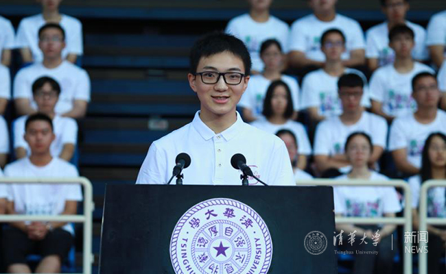 文理通识类陈开同学代表新生发言。他说,邱勇校长赠书《从一到无穷大》,让自己突破了以前狭隘的阅读领域,更深刻地理解到清华大学“文理渗透”的理念。清华教会我们懂得“一”的内涵。平凡的“一”是一切伟大事业的起点,寻常的“一”是追梦路途中必须守住的初心,从“一”开始,不忘初心,我们才能走向“无穷大”的未来。典礼在全场师生整齐的校歌声中结束。