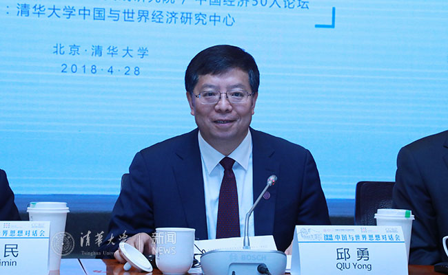 邱勇表示,近期学校成立了清华大学中国经济思想与实践研究院,旨在对中国特色经济问题进行系统性、长期性研究,总结中国经济发展经验,并升华到具有普遍意义的经济学思想,为世界经济发展提供更多的理论支撑。邱勇谈到,需要总结提炼的不仅仅是中国的经济学思想。改革开放40年来,中国在很多方面都形成了独特的经验和发展模式。这些经验和发展模式不仅仅属于中国,也属于世界,应该在更大范围内发挥更大的作用。
