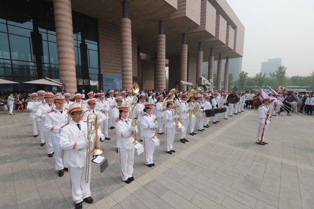 游园队伍在二校门前演奏《清华大学校歌》 王建一 摄