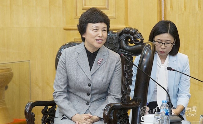 在越南教育与培训部,陈旭与越共中央委员、越南教育与培训部部长冯春雅举行会谈。