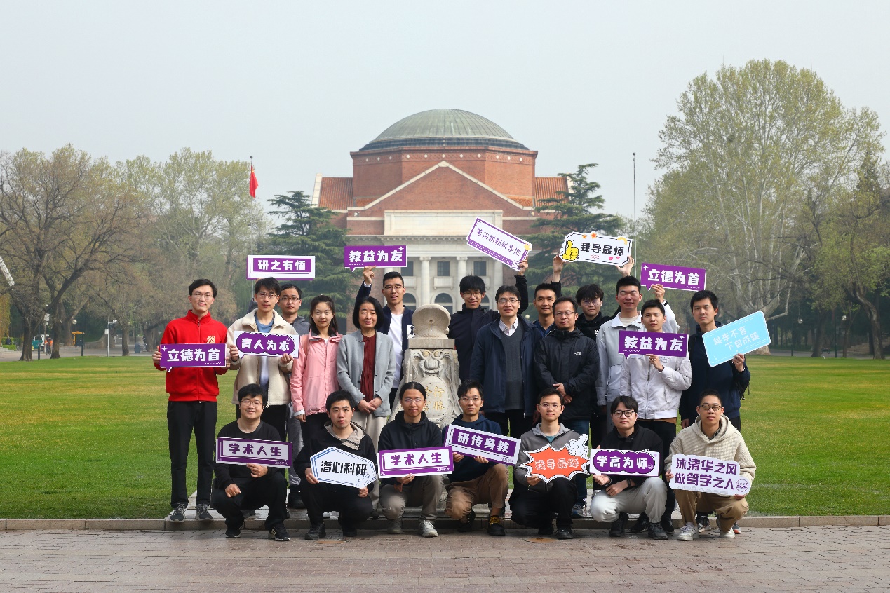 获颁清华大学“良师益友”奖后,许春晓和同学们在日晷前合影留念。