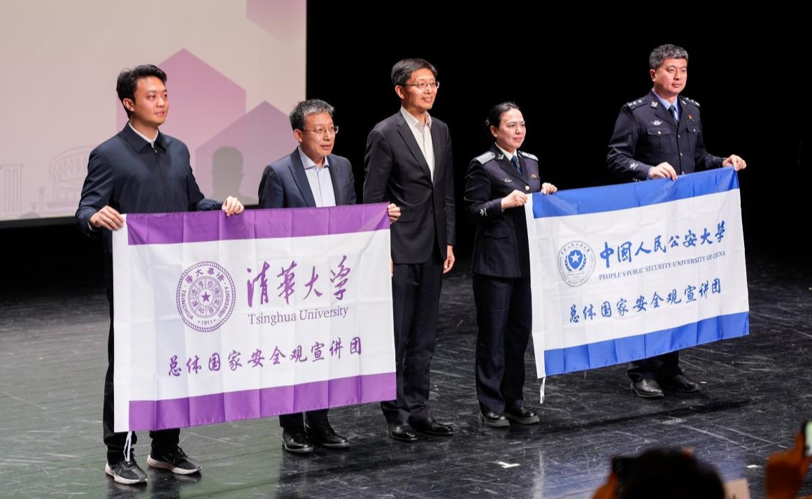 4月8日下午,清华大学总体国家安全观宣讲团成立仪式暨清华大学、中国人民公安大学践行总体国家安全观联学联讲活动在蒙民伟楼举行。北京市委有关部门副主任、一级巡视员郭志坚为两校总体国家安全观宣讲团授旗。