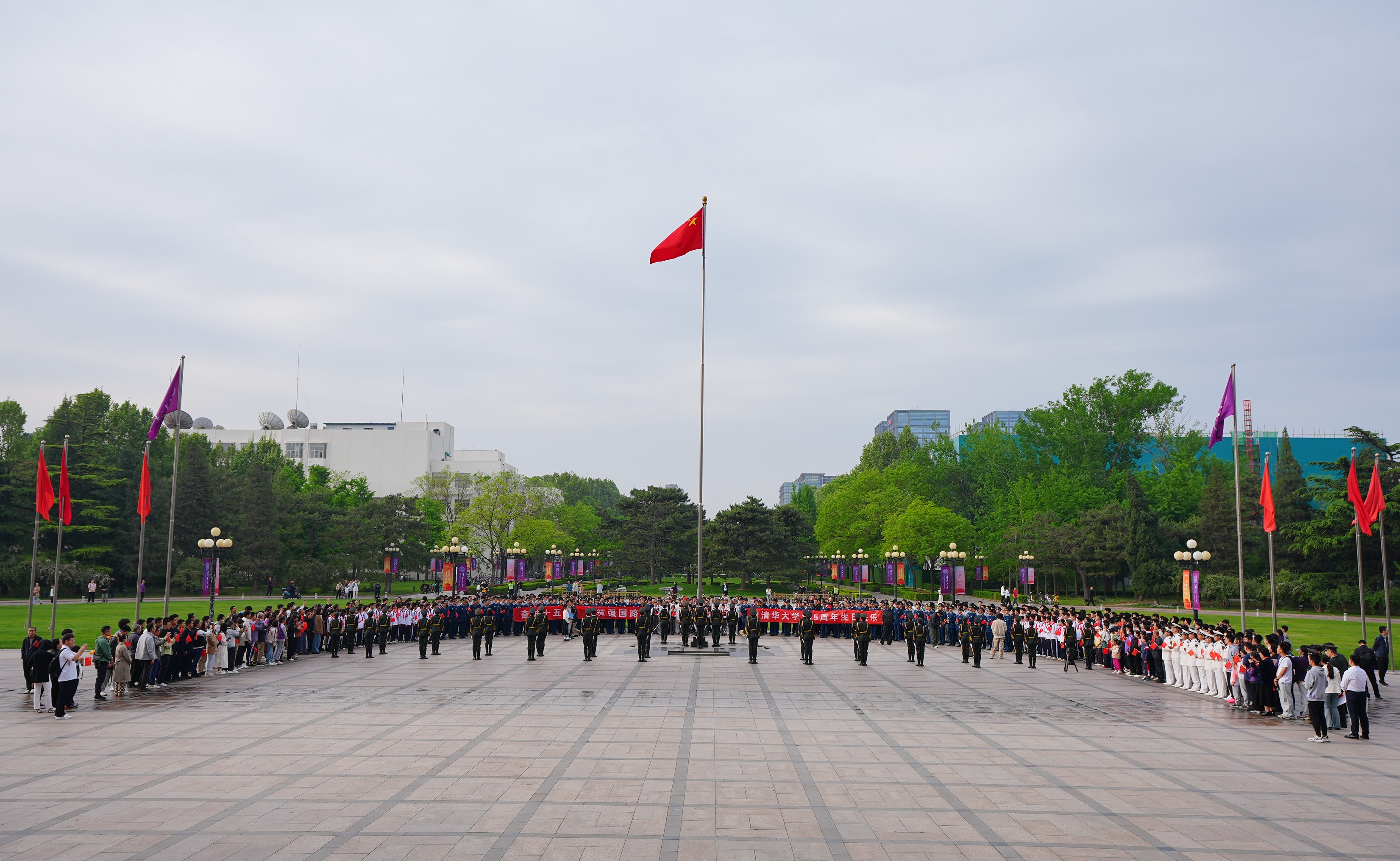 4月5日清晨,清华大学2026年清明祭扫活动举行。学校师生代表,附中、附小师生代表在“祖国儿女·清华英烈”纪念碑前共同缅怀革命先烈,寄托深切哀思。