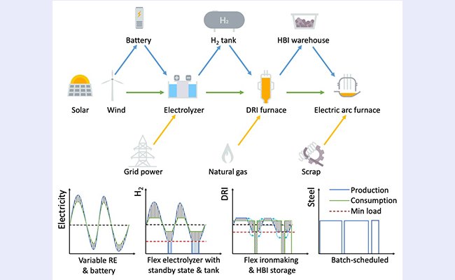 近日,清华大学能动系李政教授团队联合普林斯顿大学、沙特阿美公司团队,在可再生能源驱动的氢基炼钢系统设计方面取得重要研究进展。研究系统揭示了在高比例风光条件下,通过“制氢-炼铁-炼钢”全链条的跨环节协同优化,可显著降低绿钢生产成本,为中国氢...