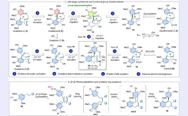 近日,清华大学药学院唐叶峰教授课题组报道了团队在活性天然产物全合成领域取得的最新进展。研究采用了一种新颖的“对称性导向”合成策略,成功实现了一系列多环芳基四氢萘型木质素的对映选择性全合成。