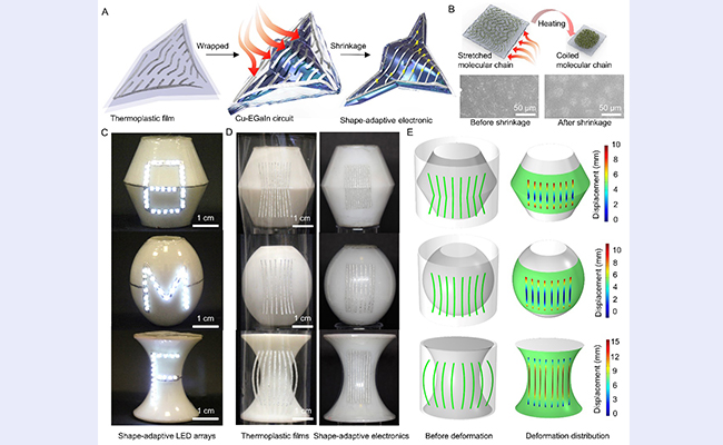 近日,清华大学深圳国际研究生院助理教授汪鸿章与天津大学教授黄显、副研究员国瑞合作提出一项创新技术,将看似科幻的场景变成现实——只需像使用“热缩保鲜膜”一样,用热风轻吹,复杂精密的电子电路便可严丝合缝地贴附于任意形状的物体表面。