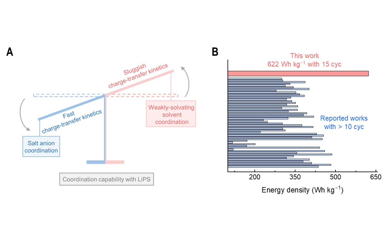 近日,清华大学化工系张强教授团队合作在高比能锂硫电池阴离子溶剂化学研究中取得新进展。研究团队及合作者突破了以往研究中对锂盐阴离子功能的传统认知,揭示了阴离子与弱溶剂的竞争配位作用,通过增强阴离子对关键中间体多硫化锂的配位,强化了锂硫电池...