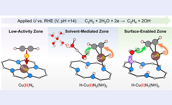 近日,清华大学化学系肖海副教授课题组在单原子电催化剂的机理研究方面取得重要进展,揭示了铜基单原子催化剂在电催化乙炔半加氢反应中电势驱动的结构演化规律及其在高选择性中扮演的关键角色。