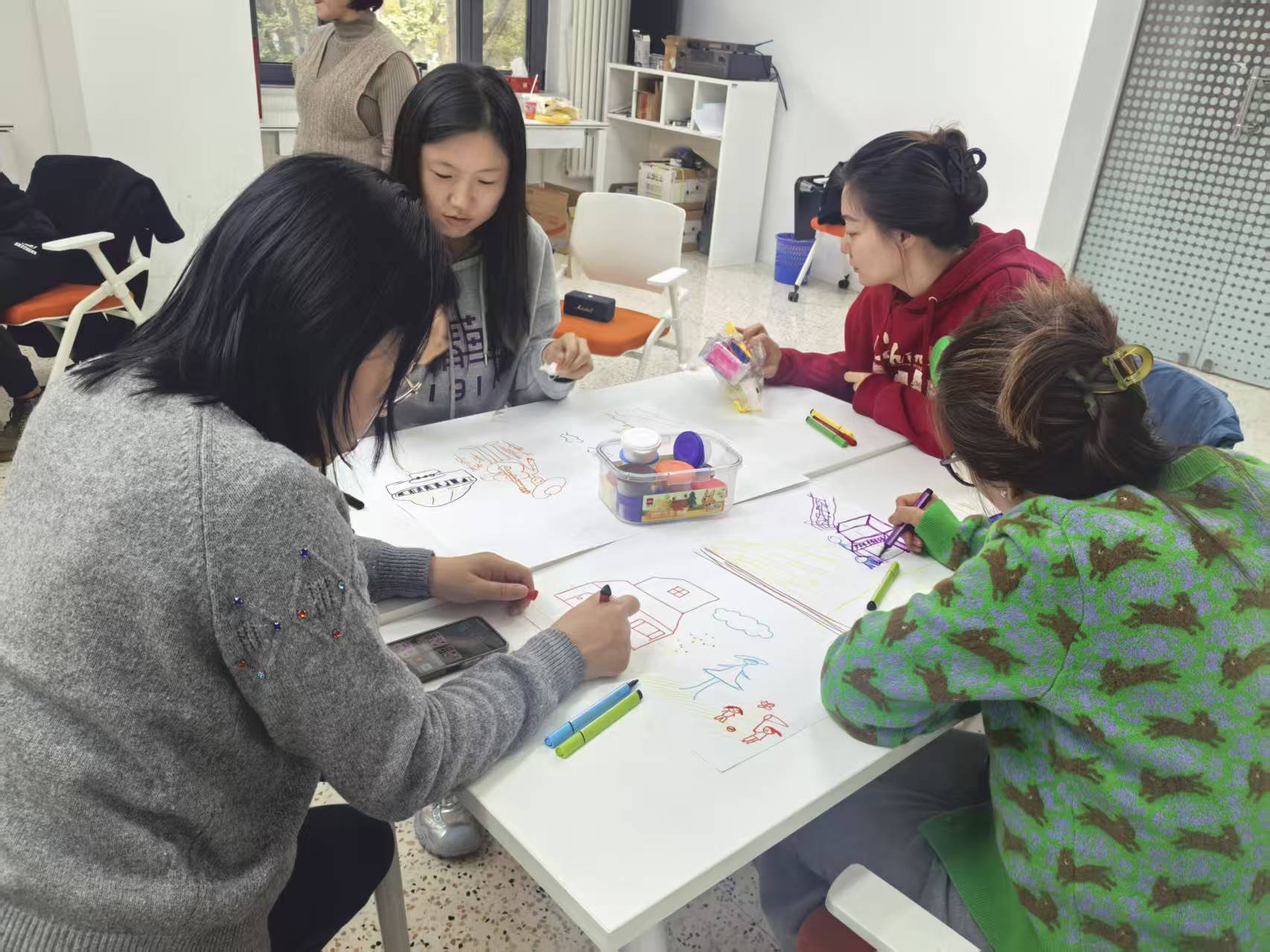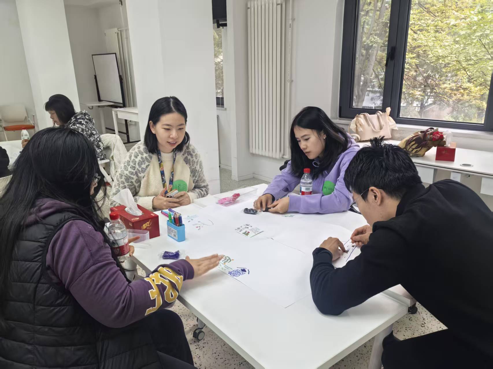 活动伊始,团队成员参与了热身活动,工作坊在轻松愉快的氛围中展开。接着,国琦老师引导大家聆听三段音乐,每位成员使用彩笔和软陶泥在绘画纸上表达出聆听音乐后的感受以及内心的情绪,探索自我认知与心灵的表达方式。大家分组轮流分享自己作品的理解以及对自我的认知,并在团体中体验联结、理解与支持,从而激发内在潜能、自我赋能。