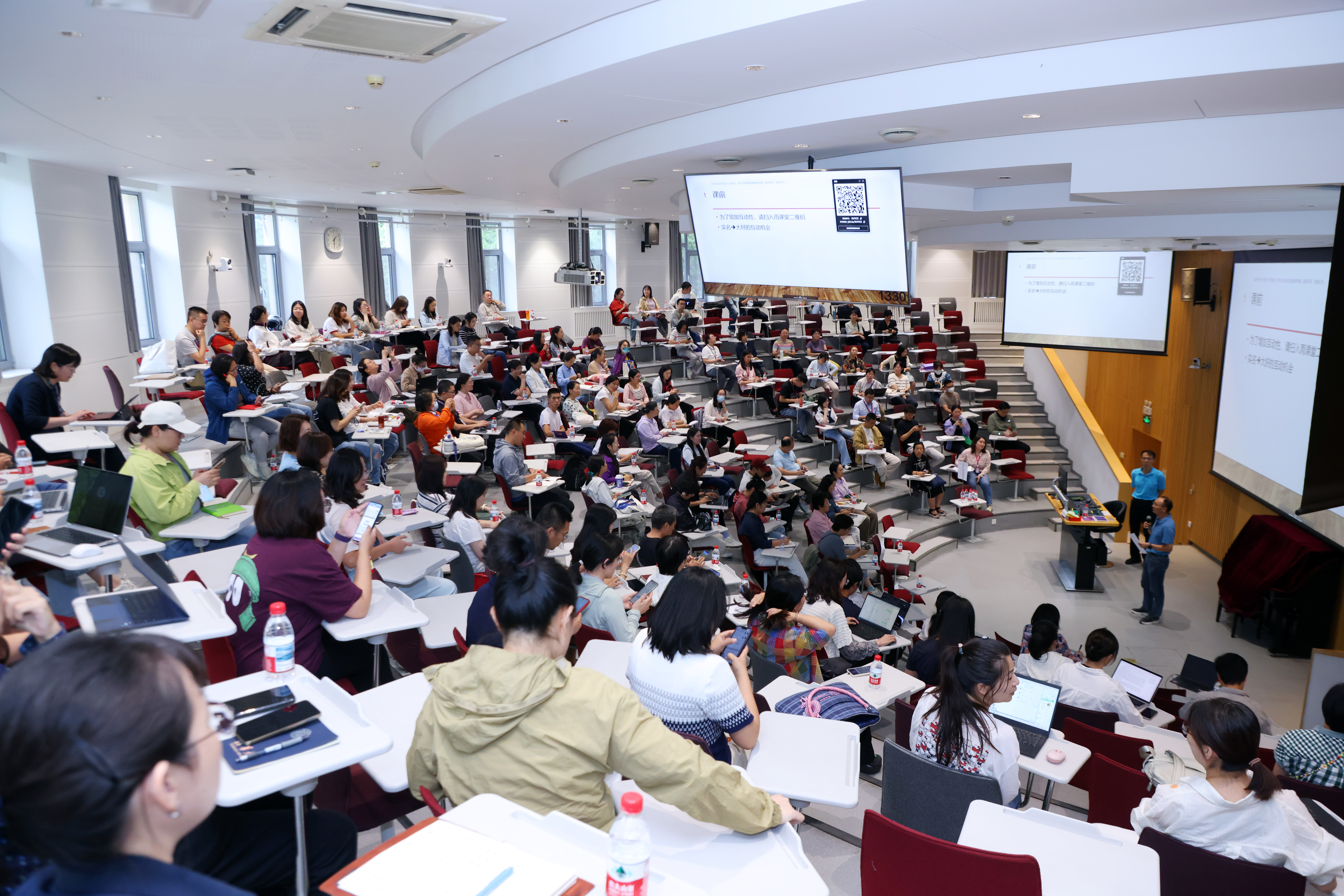 讲座以翻转课堂的方式开展,现场教职工通过雨课堂参与学习互动,通过即时演练巩固所学理论框架,掌握高效表达与汇报方法。
