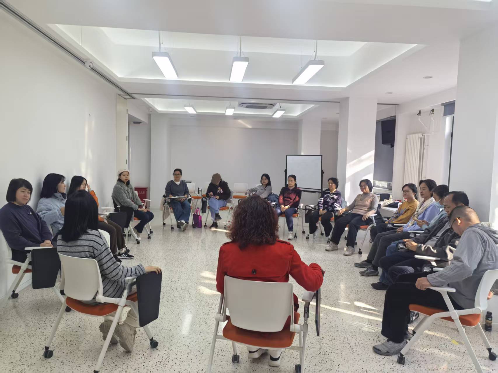为帮助教职工舒缓来自工作和生活多方面的压力,树立健康心态,找到适合自己的减压方式,11月4日下午教师工作部开展“减压赋能”团体工作坊活动。活动邀请北京师范大学天行教育哲学研究院项目研究员白羽老师,带领来自各院系、机关及支撑机构的多名教职工通过团体心理活动舒缓负面情绪,获得对于自身压力的多角度理解,学习在压力之下的负面情绪调节方法。